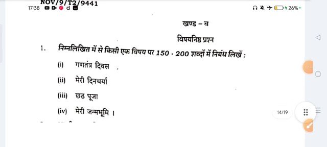 नमस्कार साथियों आप सभी का स्वागत है- एक नई आर्टिकल में इस आर्टिकल में कक्षा नवमी का सेकंड टर्मिनल परीक्षा जो होने जा रहा है |आज 27 नवंबर है| आज हिंदी और संस्कृत का परीक्षा है| जिसका ओरिजिनल क्वेश्चन पेपर इस आर्टिकल में आपको देखने को मिलने वाला है |