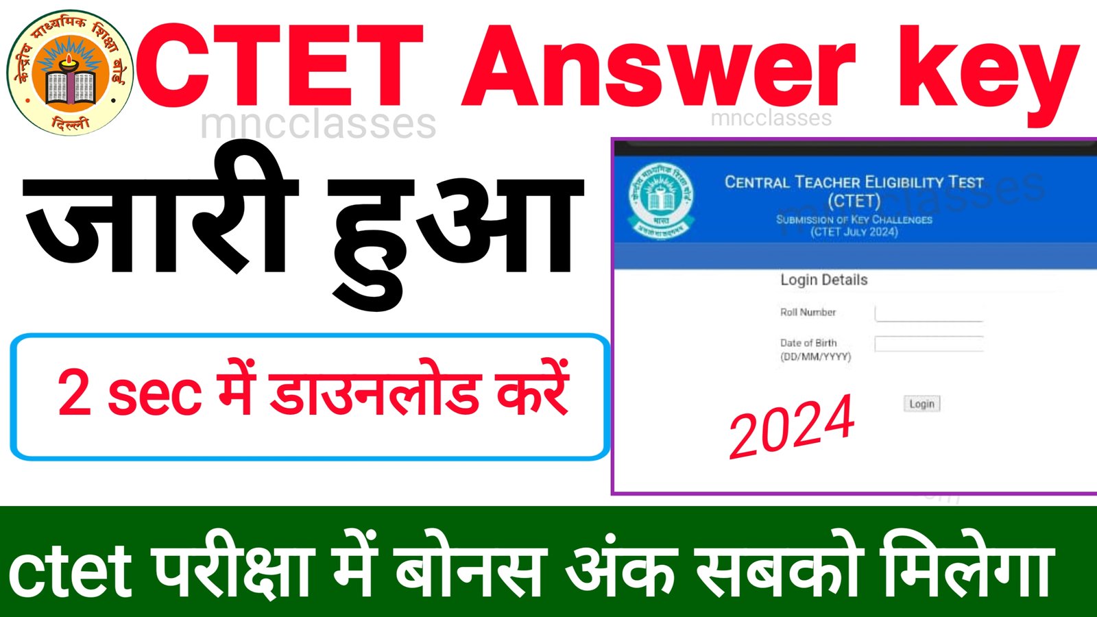 केंद्रीय शिक्षक पात्रता परीक्षा 2024 जुलाई में आयोजन किया गया जिनका आंसर की अभी-अभी जारी कर दिया गया है |आंसर की डाउनलोड करने के लिए अभी इस आर्टिकल को पूरा ध्यान से जरूर पढ़ें| इस आर्टिकल में आपको इसके अलावा अन्य जानकारी भी दी जाएगी| जैसे सीटेट परीक्षा में कट ऑफ ईश्वर कितना रहने वाले हैं इसके अलावा बोनस अंक किन को दिया जाएगा |