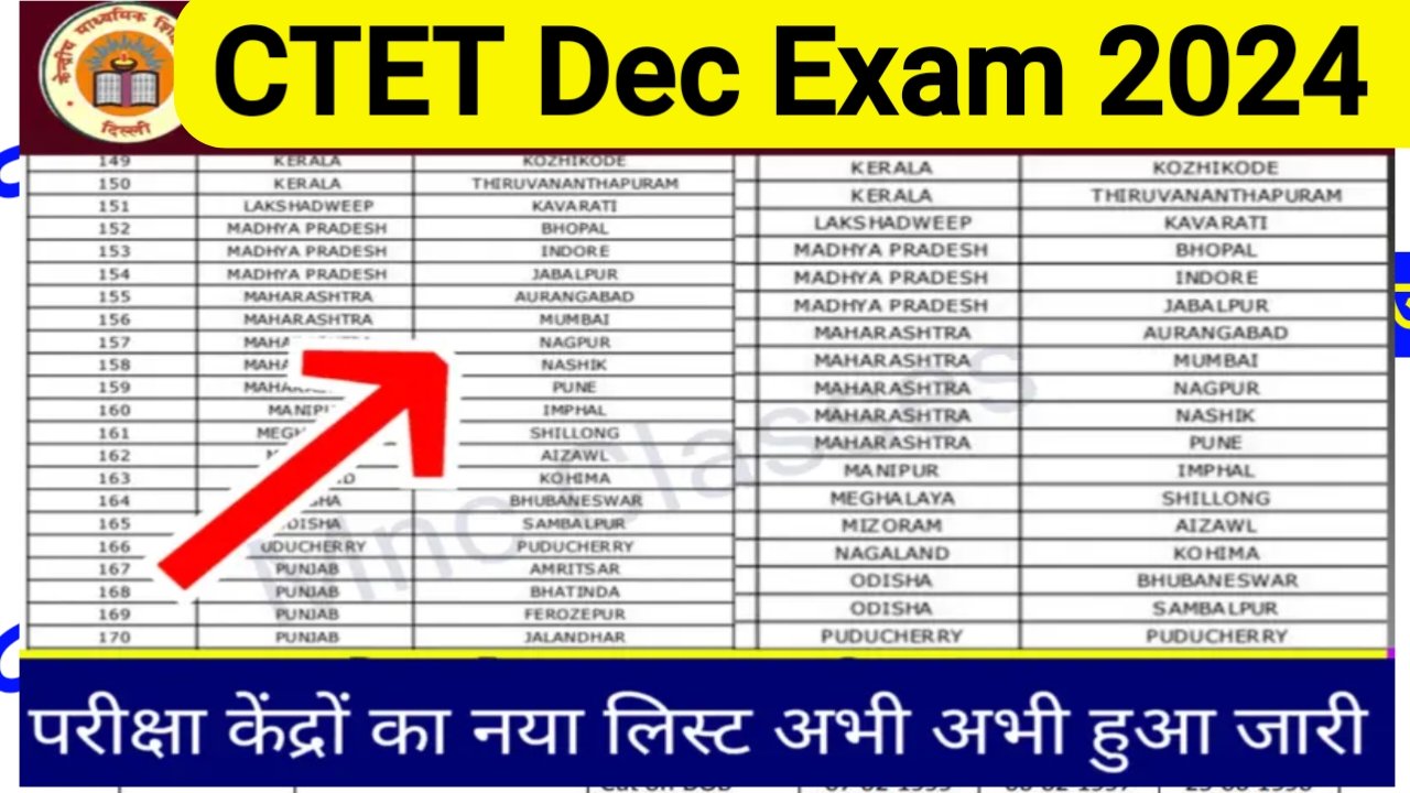 CTET Dec Exam 2024 | सेंटर लिस्ट जारी | सीटेट परीक्षा का सेंटर लिस्ट यहां देखें अभी अभी हुआ जारी