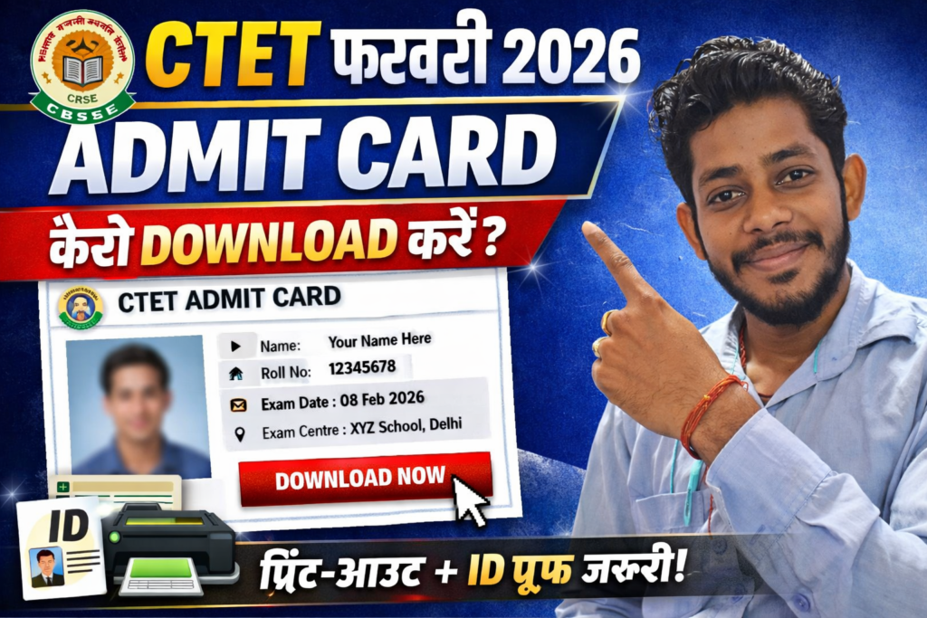 क्या मेरे शिक्षक पात्रता परीक्षा 2026 का आयोजन 7 और 8 फरवरी को पूरे भारतवर्ष में कराया जा रहा है| 7 और 8 फरवरी को परीक्षा होने वाले सभी उम्मीदवारों का एडमिट कार्ड जारी कर दिया गया है| CTET Exam Feb 2026 एडमिट कार्ड डाउनलोड करने में शुरुआती दौर में थोड़ी सी समस्या हुई थी| लेकिन यह सुधार हो चुका है| आप सबसे नीचे जाकर के लिंक दिया गया है | आप उसे लिंक से अपना एडमिट कार्ड डाउनलोड कर सकते हैं|