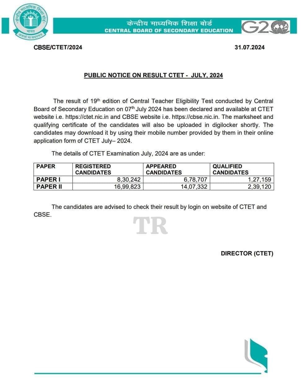 CTET July Result 2024 ( घोषित ) Declared | सीटेट जुलाई रिजल्ट जारी सबसे पहले यहां से चेक करें