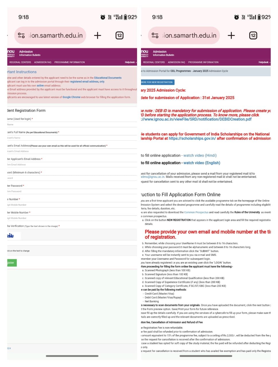IGNU Admission के लिए रजिस्ट्रेशन कैसे करें