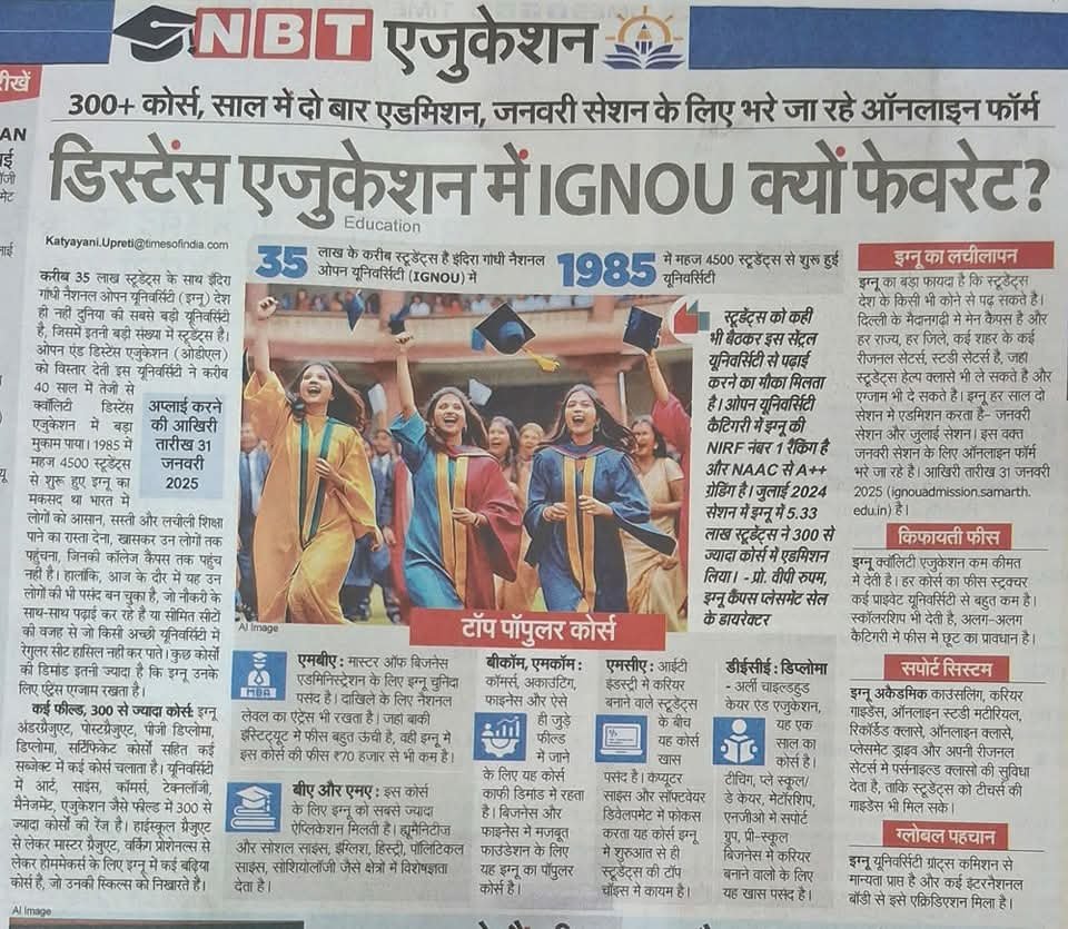 • एजुकेशन में बड़ा मुकाम पाया। 1985 में महज 4500 स्टूडेंट्स से शुरू हुए इग्नू का मकसद था भारत में लोगों को आसान, सस्ती और लचीली शिक्षा पाने का रास्ता देना, खासकर उन लोगों तक पहुंचना, जिनकी कॉलेज कैपस तक पहुंच नहीं है। हालांकि, आज के दौर में यह उन लोगों की भी पसंद बन चुका है,