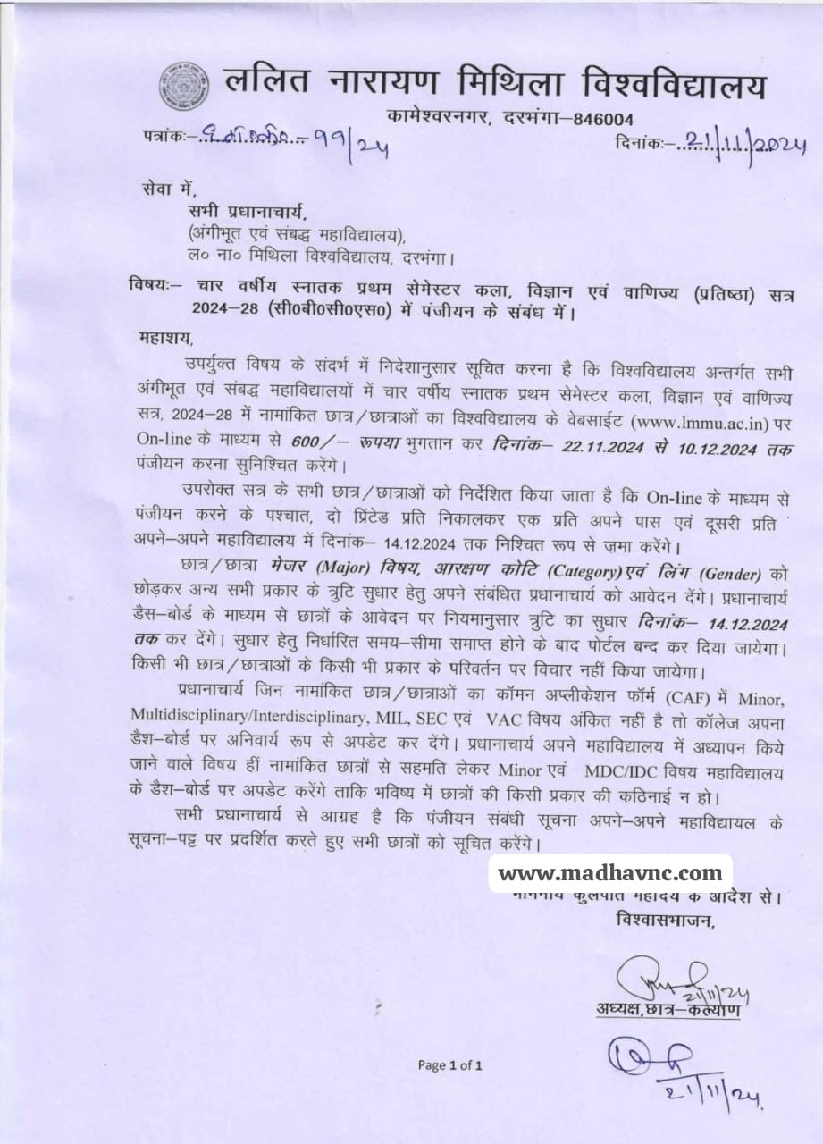 दोस्तों आप सभी की जानकारी के लिए बता दें स्नातक फर्स्ट सेमेस्टर परीक्षा का आयोजन दिसंबर माह में निश्चित रूप कराई जाएगी इसलिए सभी छात्र-छात्राएं अपनी तैयारी अच्छी तरह से शुरू कर दें- असाइनमेंट क्वेश्चन पेपर बनाकर जल्दी से आप अपने कॉलेज में जमा करें या जब भी आपके कॉलेज मांगा जाता तब आप अपने कॉलेज में जमा करें | आप सबको बता देते हैं | LNMU UG 1st Semester Exam रजिस्ट्रेशन, और परीक्षा फॉर्म नवंबर महीने भर ली जाएगी जिसका परीक्षा दिसंबर से जनवरी तक ले जाएगी|