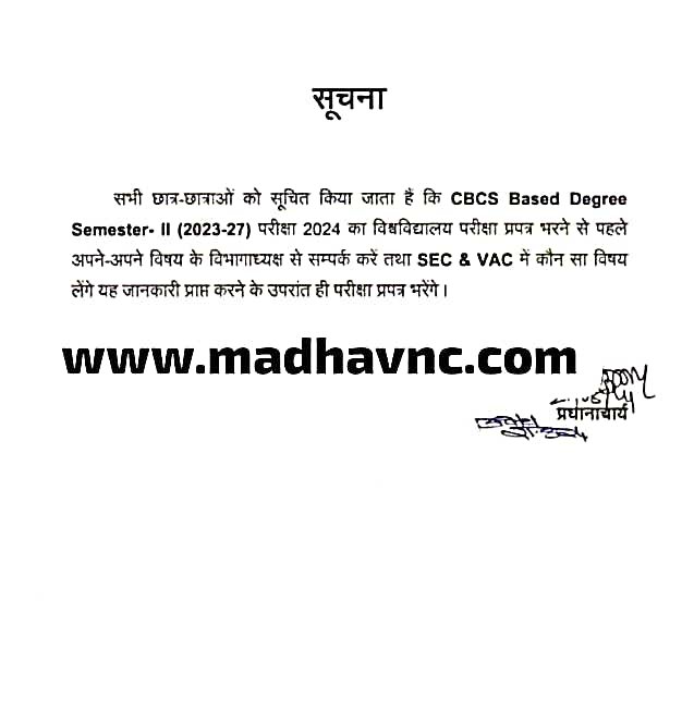स्नातक द्वितीय सेमेस्टर (सत्र 2023-27) परीक्षा-2024 एबीसी आईडी बहुत जरूरी