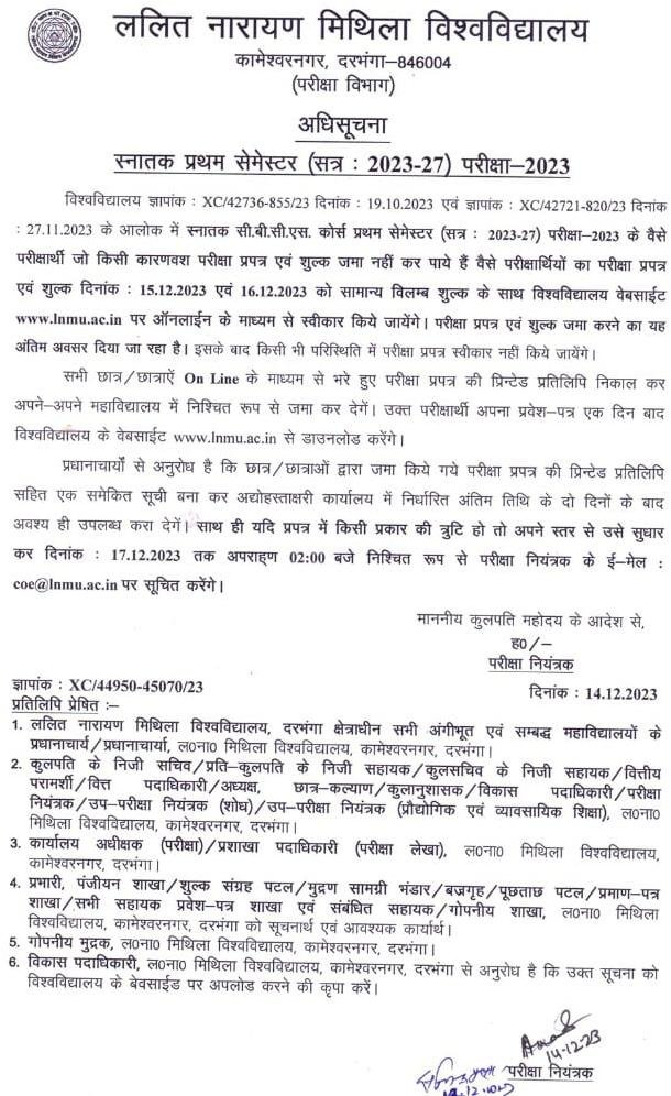 Lnmu CBCS Exam 2023-27 Admit card Download Link