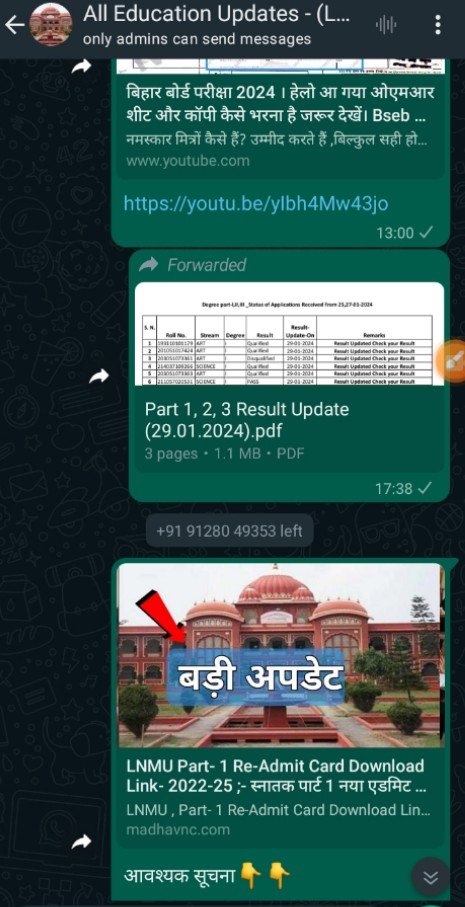 किसी भी यूनिवर्सिटी का कोई भी अपडेट पाने के लिए इस ग्रुप से जुड़े। इस में बिहार बोर्ड सहित अन्य सरकारी योजनाओं से जुड़े तमाम जानकारी नोटिस के साथ दिया जाता है—