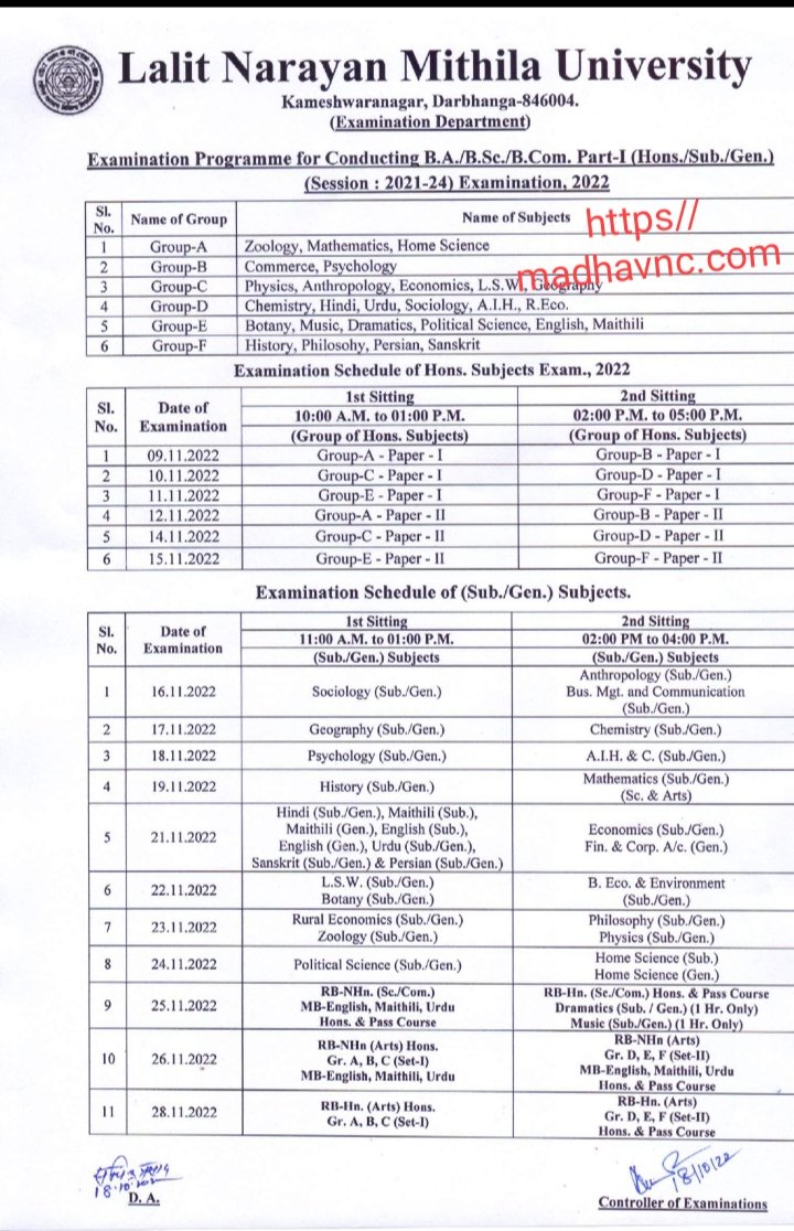 ललित नारायण मिथिला यूनिवर्सिटी स्नातक प्रथम खंड सत्र (2021-2024) का परीक्षा प्रोग्राम जारी कर दिया गया है।