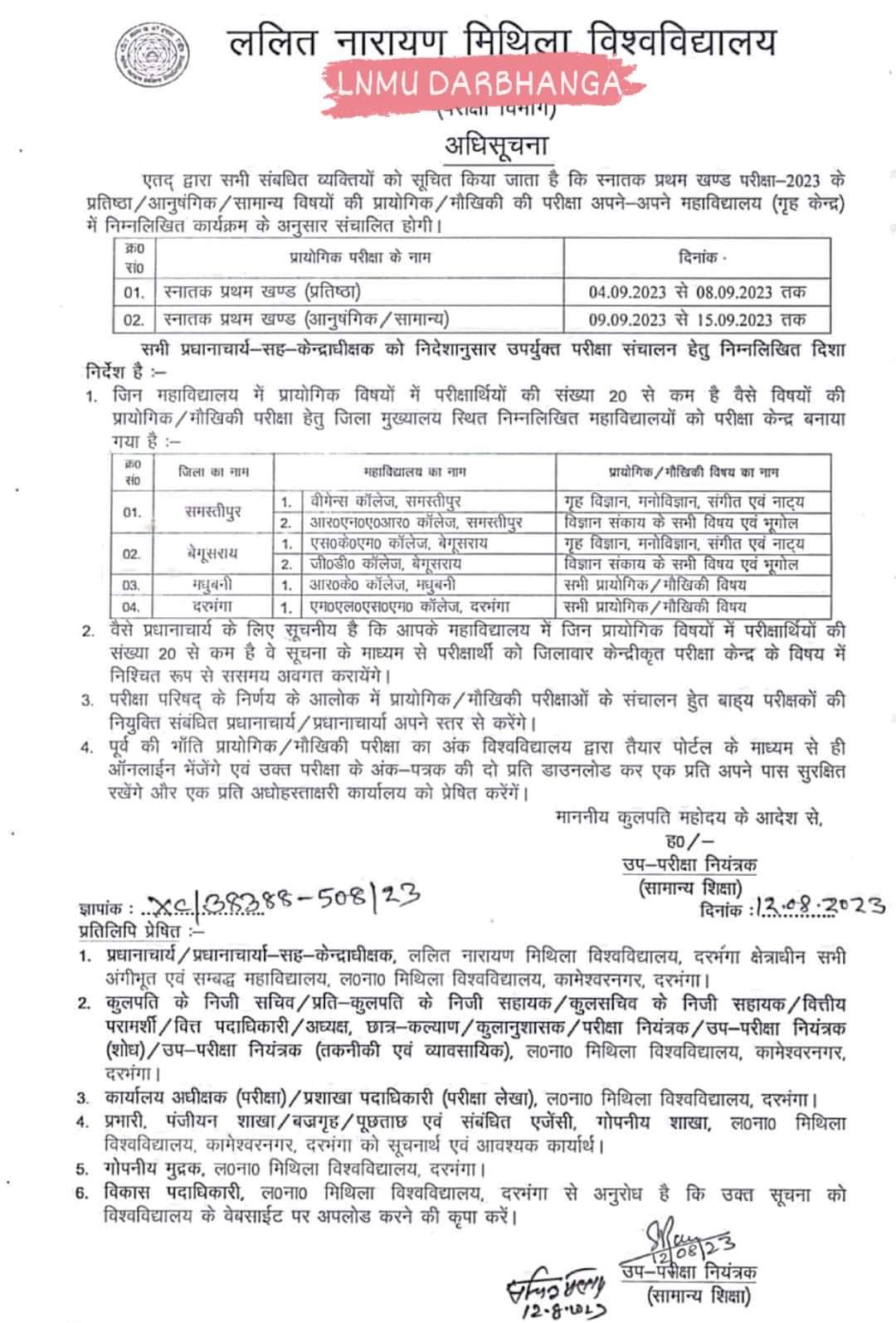 वैसे lnmu Part- 1 पार्ट वन परीक्षा का परिणाम अक्टूबर तक घोषित कर देने की सूचना पहले ही यूनिवर्सिटी के परीक्षा नियंत्रक अर्थात ललित नारायण मिथिला यूनिवर्सिटी के परीक्षा नियंत्रक के द्वारा बताया गया था । की अक्टूबर के अंतिम सप्ताह तक पार्ट 1 रिजल्ट घोषित कर दिया जाएगा। जिससे सत्र पीछा हो रहे हैं। वह नहीं हो पाएगा।