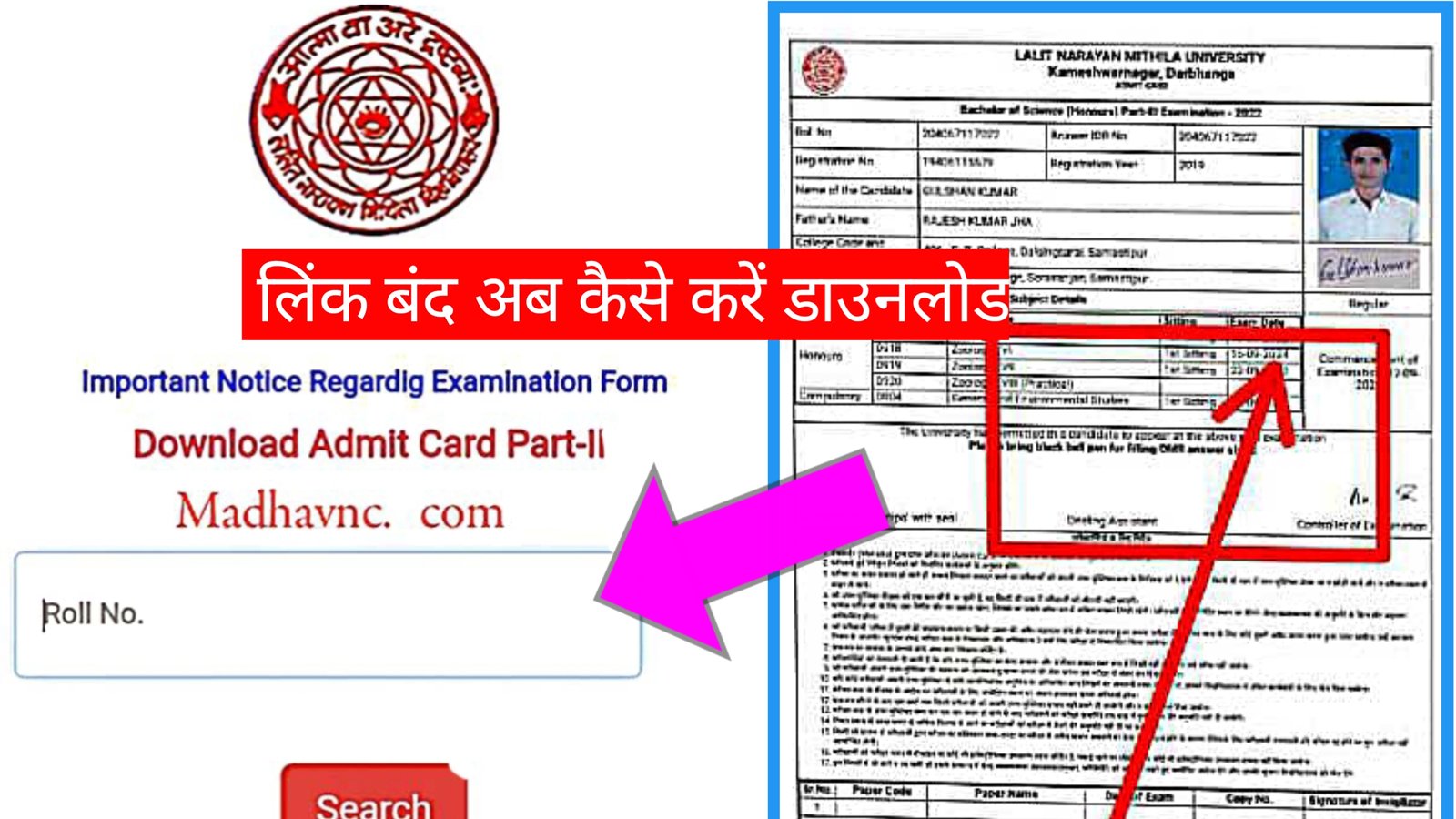 ललित नारायण मिथिला यूनिवर्सिटी के द्वारा एडमिट कार्ड 10 दिसंबर को जारी किया गया। लेकिन एडमिट कार्ड में काफी गलतियां देखा गया, जिसकी वजह से पुनः लिंक को refresh कर दिया गया है। जहां से अगर आप डाउनलोड करते हैं , तो वह बिल्कुल रूप से सही दिखाई देगा, तो अभी फिर से करें डाउनलोड।