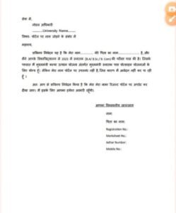 जानकारी के लिए बता दे -दोस्तों यदि आपका रिजल्ट जारी हो गया है और अपने रिजल्ट देखने के लिए लेकिन आपको ऐसा लग रहा है  । कि किसी विषय में चाहे वह सैद्धांतिक परीक्षा हो या practical परीक्षा में अपने भाग लिया हो और इसमें आपको अनुपस्थित बताया जा रहा है। तो यह आपका रिजल्ट त्रुटि पूर्ण है ।  इसे आपको सुधार करना पड़ेगा इसके लिए आपको एक एप्लीकेशन लिखना होगा एप्लीकेशन में जो दिक्कत है आपके रिजल्ट के साथ वही आपको भरना होगा भरकर के आप कॉलेज में जमा कर देंगे या चाहे तो आप यूनिवर्सिटी से भी अपना परिणाम सुधार करवा सकते हैं ।