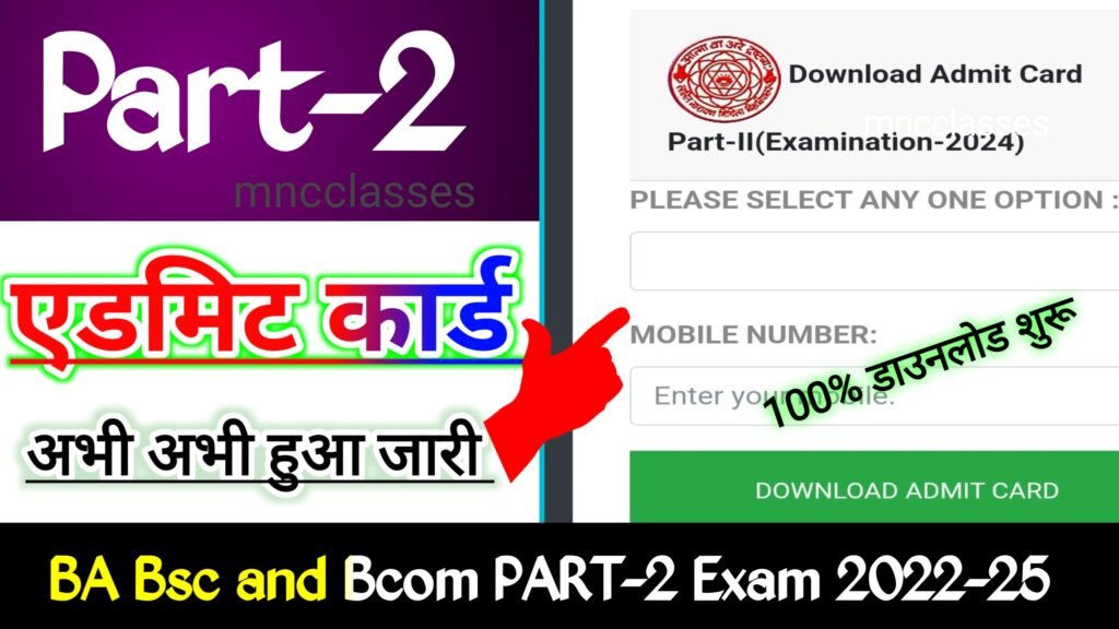 BA Bsc and Bcom Part 2 Admit Card Download link 2022-25 स्नातक पार्ट 2 एडमिट कार्ड जारी सबसे पहले यहाँ से करें डाउनलोड