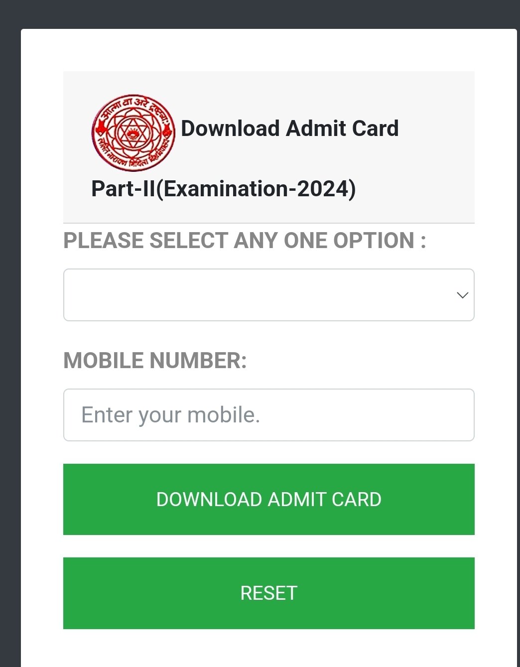 पार्ट 2 एडमिट कार्ड डाउनलोड करने के लिए