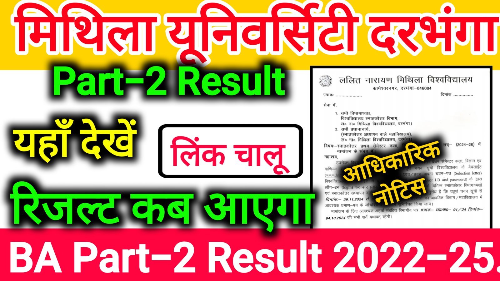 नमस्कार साथियों आप सभी का स्वागत है- की नई आर्टिकल में इस आर्टिकल में हम जानकारी देने वाले हैं| स्नातक पार्ट 2 का रिजल्ट आखिर कब होगा जारी | LNMU Part-2 रिजल्ट की तैयारी बिल्कुल रूप से पूरी हो चुकी है |लेकिन रिजल्ट प्रकाशित नहीं की जा रही है |कुछ दिन पहले ऐसा न्यूज़ सोशल मीडिया पर तेजी से वायरल हो रहा था |कि LNMU Part-2 Results 2022-25 पार्ट 2 का रिजल्ट अगले सप्ताह जारी होगा और देखते-देखते अगला सप्ताह खत्म भी हो गया है, और अभी तक परिणाम आपका जारी नहीं हुआ है | तो आखिर आपका परिणाम कब होगा जारी सही जानकारी इस आर्टिकल में हम आपको बताने वाले हैं| कि आखिर किस सप्ताह रिजल्ट आपका फाइनल रूप से जारी होगा |
