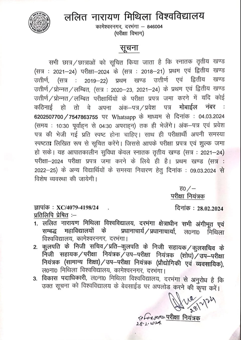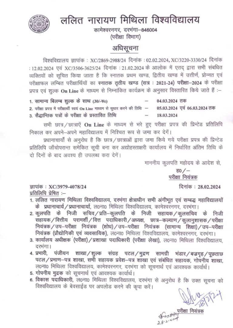 Lalit Narayan Mithila University Part- 3 Exam- 2024 Highlights