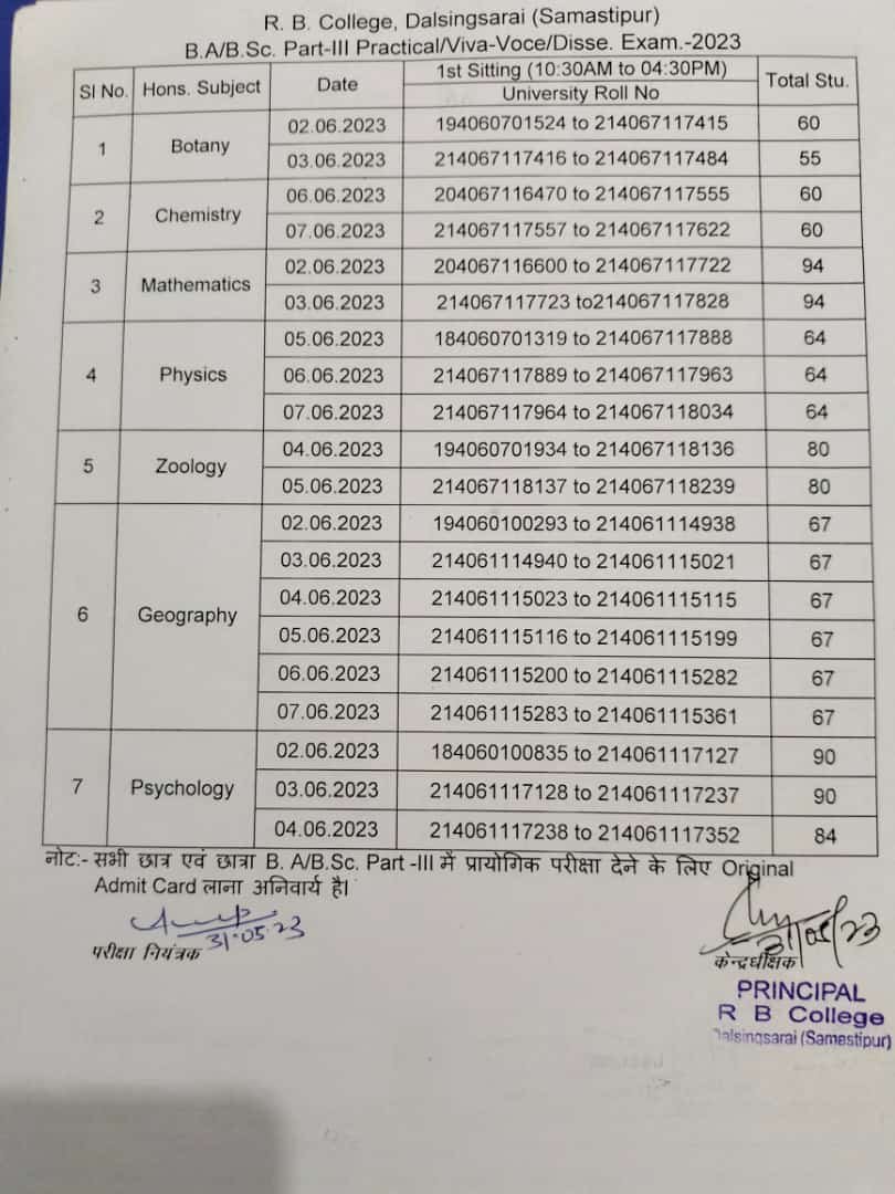 स्नातक तृतीय खंड प्रैक्टिकल परीक्षा के लिए सभी कॉलेज के द्वारा जारी रूटिंग और एडमिट कार्ड के बारे में कब होगी जारी