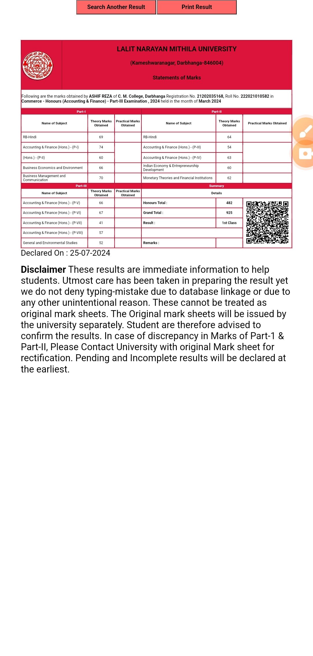 ललित नारायण मिथिला यूनिवर्सिटी के द्वारा स्नातक पार्ट 1,2,3 सभी का सुधार के लिए भेजा गया |रिजल्ट सुधार करके वेबसाइट पर अपलोड कर दिया गया है |