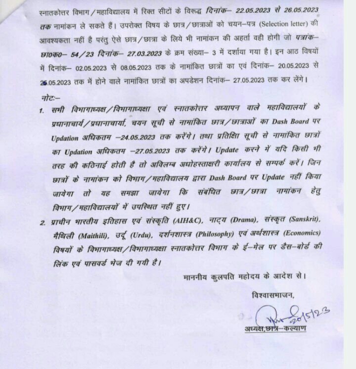 जानकारी के लिए बता दें पीजी फर्स्ट सेमेस्टर में नामांकन के लिए ऑफिशल नोटिफिकेशन भी जारी कर दिया गया है जो नीचे दिया गया है। इससे संबंधित पूरी जानकारी विस्तार से समझे।