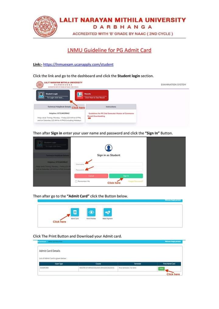 ललित नारायण मिथिला यूनिवर्सिटी के द्वारा पीजी फर्स्ट सेमेस्टर का एडमिट कार्ड जारी कर दिया गया है जिसे डाउनलोड करने के लिए मिथिला विश्वविद्यालय के ऑफिशियल साइट पर जाना होगा लेकिन आप लोग को बता दें वहां पर अभी काफी दिक्कतें आ रही है एडमिट कार्ड डाउनलोड करने में इस आर्टिकल में आपको मिलेगा डायरेक्ट लिंक जिस पर क्लिक करके आप सीधे कर सकते हैं एडमिट कार्ड अपने मोबाइल में डाउनलोड डाउनलोड करने के बाद एडमिट कार्ड नेचर मोहर कॉलेज से लगवाना होगा या नहीं इसके लिए इस पोस्ट को पूरा पढ़ें।