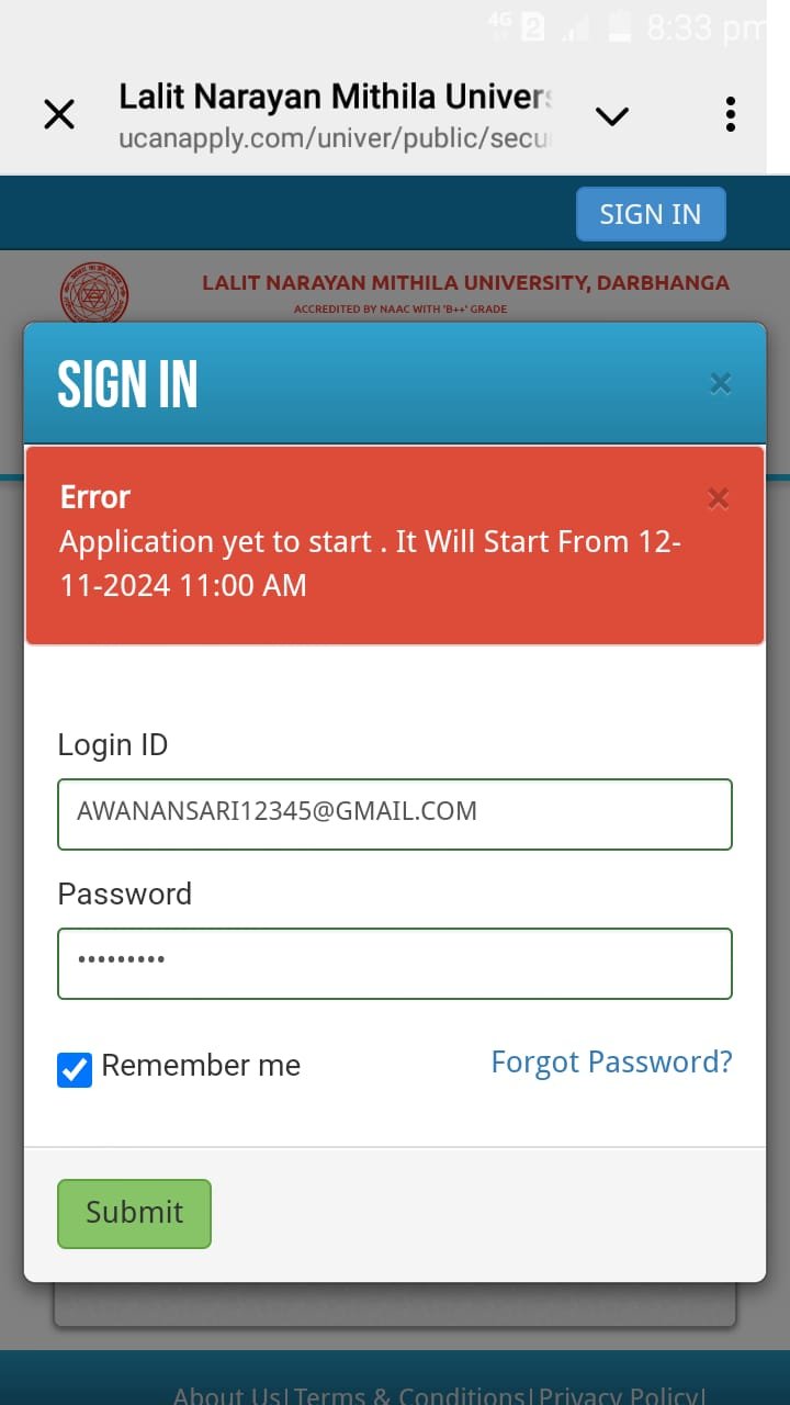 जिस ईमेल आईडी से अपने एडमिशन फॉर्म भरे थे, वही ईमेल आईडी आपको देना है, और पासवर्ड Admission लेते समय अपने यानी करते समय जो बनाए थे |