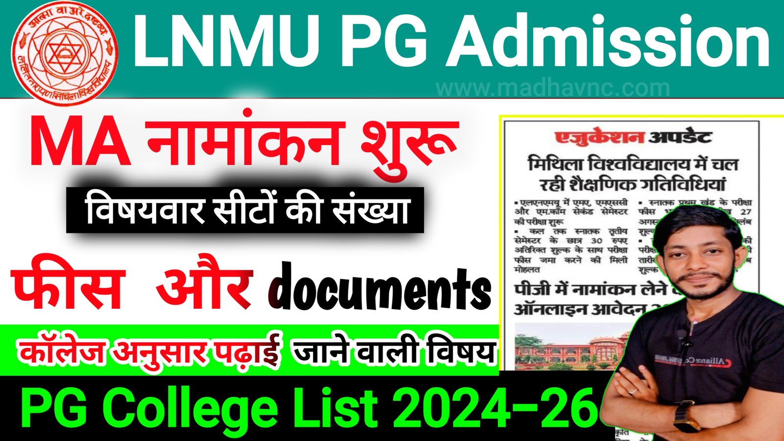 LNMU pg 1st Semester Admission 2024-26 पीजी फर्स्ट सेमेस्टर में नामांकन के लिए कौन-कौन सा डॉक्यूमेंट आपको तैयार रखना है| साथ ही साथ ऐसा कौन-कौन सा कॉलेज हैं ,जो मिथिला यूनिवर्सिटी के अंतर्गत आते हैं जहां PG शिक्षण कार्य चलती है|