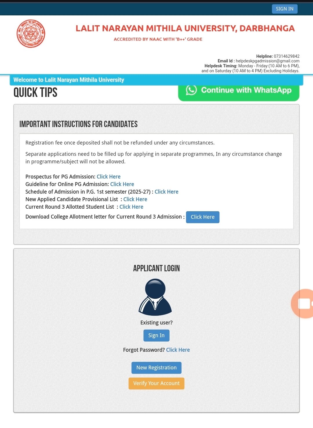 LNMU दरभंगा (PG Admission Cell / Registrar Office के पास)