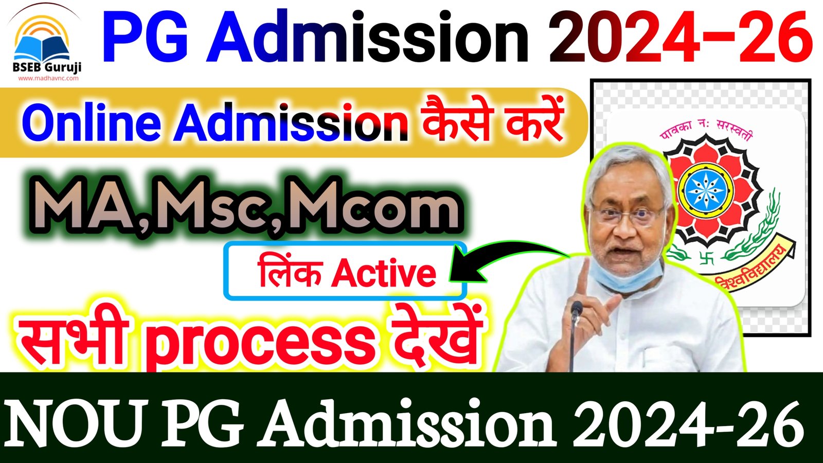 यदि आपकी PG Admission 2024-26 में नामांकन लेना चाहते हैं, तो इसके लिए ऑनलाइन आवेदन की प्रक्रिया शुरू हो चुका है | नालंदा ओपन यूनिवर्सिटी से पीजी में नामांकन की प्रक्रिया वर्ष 2024 से ही शुरू की जा रही है ,अर्थात इसी वर्ष से मंजूरी दे दी गई है| इसी वर्ष से आप PG Admission एडमिशन ले सकते हैं |
