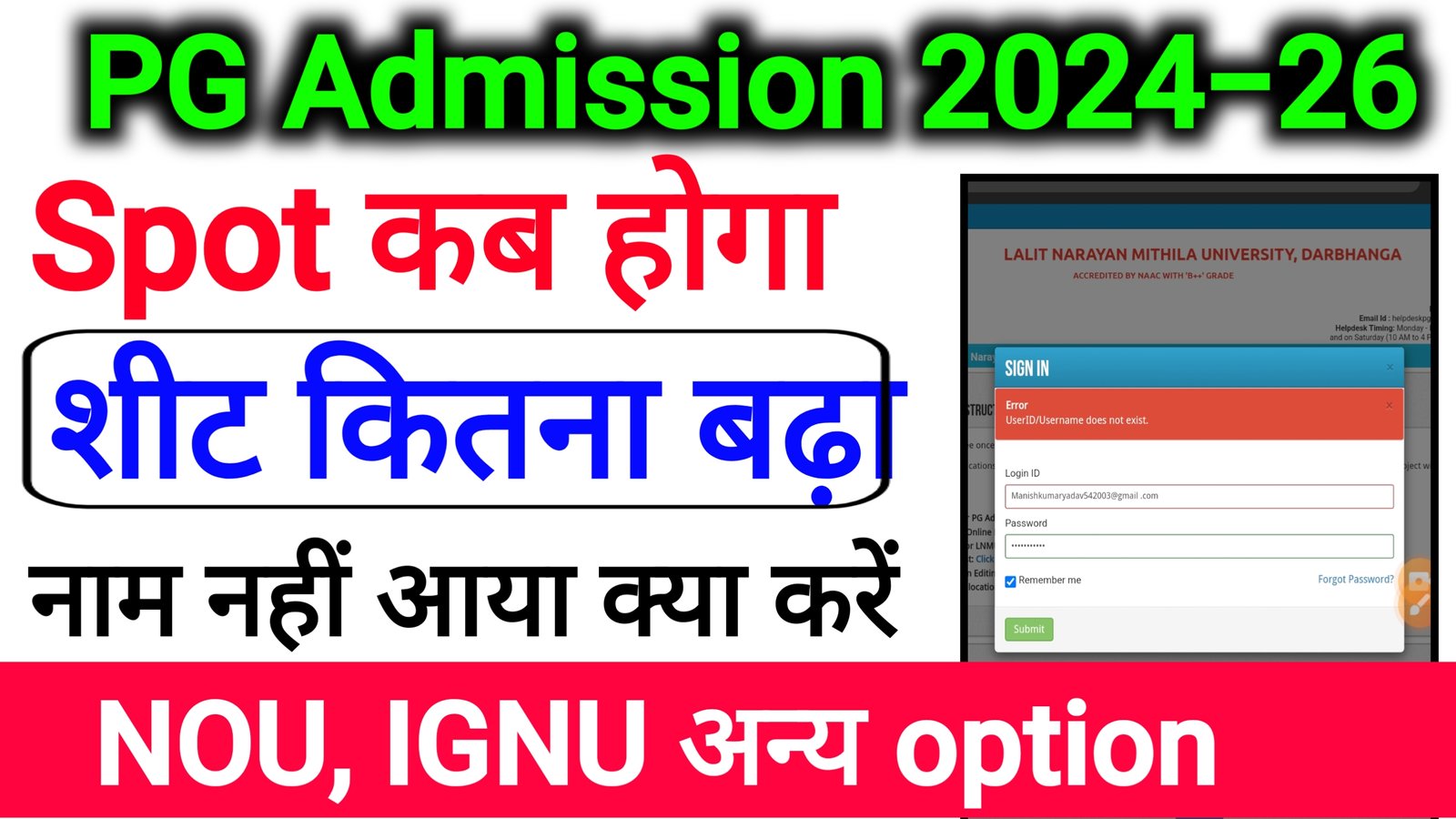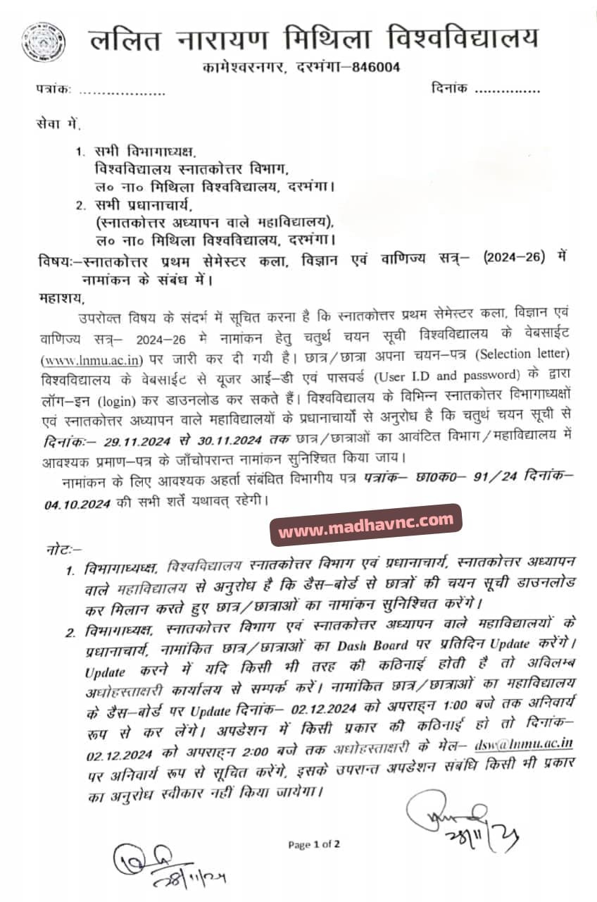 हेलो साथियों नमस्कार आप सभी का स्वागत है – एक नई आर्टिकल में इस आर्टिकल में हम बात करेंगे| पीजी फर्स्ट सेमेस्टर में नामांकन के लेकर के प्रथम चरण सूची से लेकर के चतुर्थ सूची तक जारी किया गया| लेकिन हजारों छात्र ऐसे हैं| जिनका नाम अभी तक किसी सूची में नहीं आया तो वैसे छात्र अब PG Admission 2024-26 कैसे करेंगे?  क्या मिथिला यूनिवर्सिटी के अंतर्गत Sheet बढ़ा करके PG Spot Admission नामांकन शुरू किया जाएगा या फिर नहीं आखिर कैसे आपको एडमिशन लेना है?