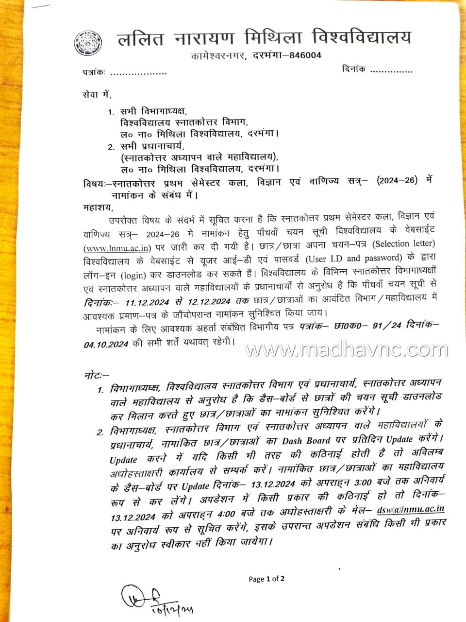 LNMU PG Admission 2024-26 अपनी शिकायत यूनिवर्सिटी में करें एडमिशन हो सकता है