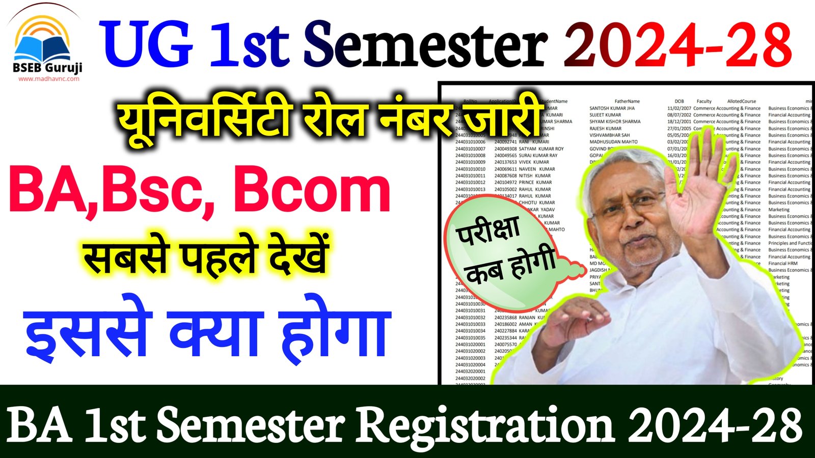 हेलो नमस्कार आप सभी का स्वागत है, एक नई आर्टिकल में इस आर्टिकल में हम आपको जानकारी देने वाले हैं| स्नातक फर्स्ट सेमेस्टर रजिस्ट्रेशन (Ug 1st Semester Registration 2024-28 )कब होगा और यूनिवर्सिटी रोल नंबर आप कैसे डाउनलोड कर सकते हैं| सभी यूनिवर्सिटी के द्वारा सभी छात्र-छात्राओं के लिए यूनिवर्सिटी रोल नंबर जारी कर दिया गया है|